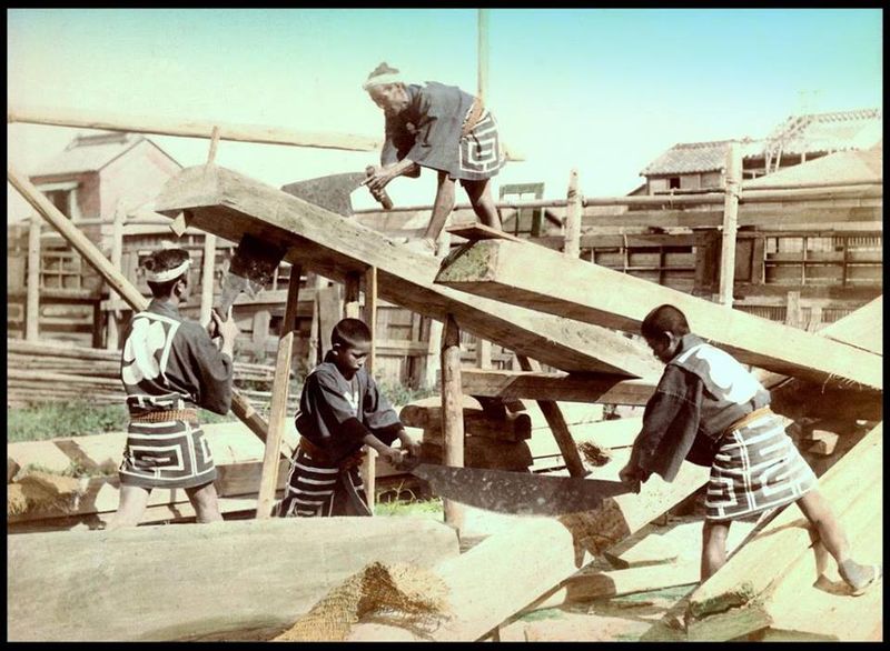 手前:両引きの弓なり鋸って こうやって使われてたんだと関心。