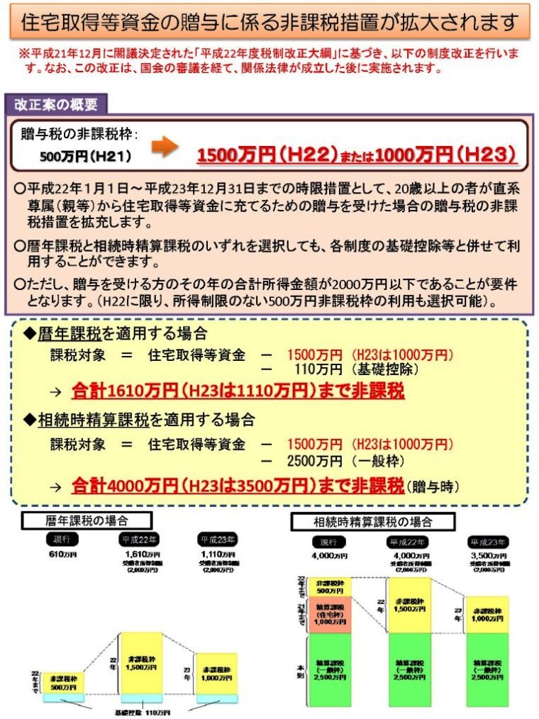 今年の住宅関連税制のひとつに「贈与に係る非課税措置」の拡大があります。