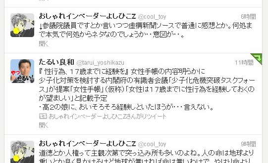 ここぞとばかりに並んだ「ミズホたんと愉快な女性議員」の方々。なんでもかんでも女性蔑視に繋げるのは無理が大きすぎる。男女差別と言う利権を守りたくてしょーが無い様にしか映らないよ。そんな利権あるのか知らないけどw