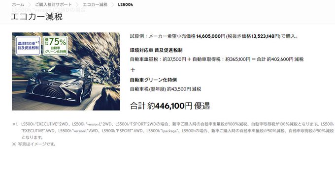 5000ccのエンジンで、2.5tも車重ある車がエコカー減税と言う謎。かたや13年以上大切に乗られた車には 自動車増税加算。エコの定義を教えろ下さい凸