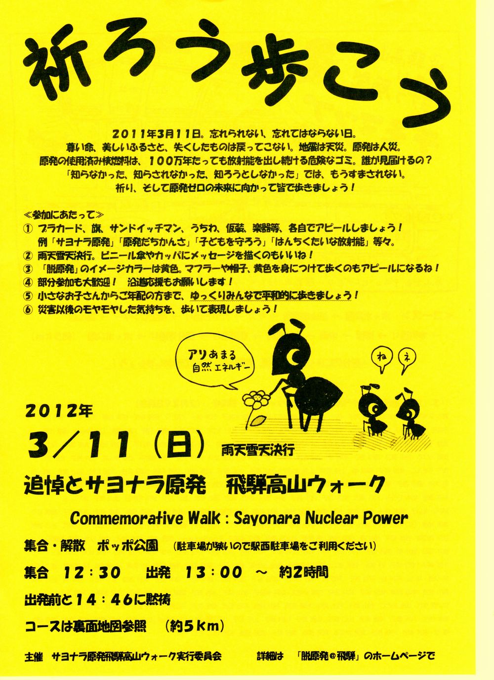「ひだ自然エネルギー協議会」より【 祈りのウォーキング 】と言うイベントの案内を頂きました。