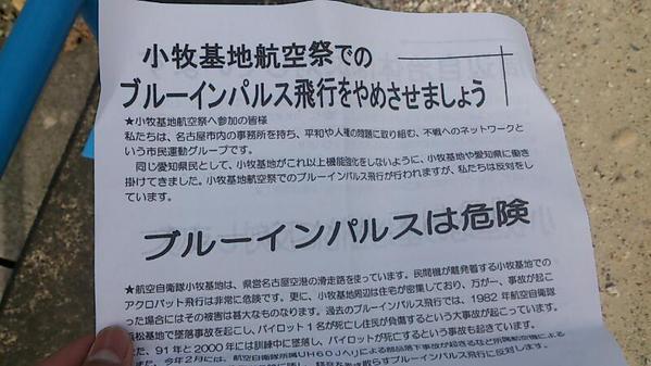 画像ネットで見つけたんだけど、基地まで着てこーゆービラまく人達ってもちろん車でなんか来てないよね。もちろん公共機関も含めて。単純にリスク評価すれば怖くて道路なんて歩けないけど。