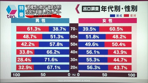 大阪都構想、一説によると世代別20~50代は賛成が多く60代以上が反対が多かったそうだ。僅差の結果と世代別人口分布を考えれば、なるほどそう言う事なんだ。