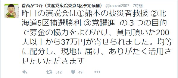 北海道5区補選支援、党躍進のために・・横領ですな。