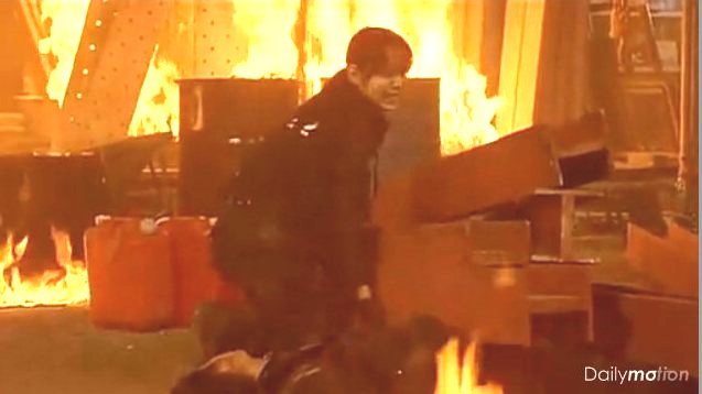 爆発と共に主人公が倒れてきたH鋼の下敷きに。