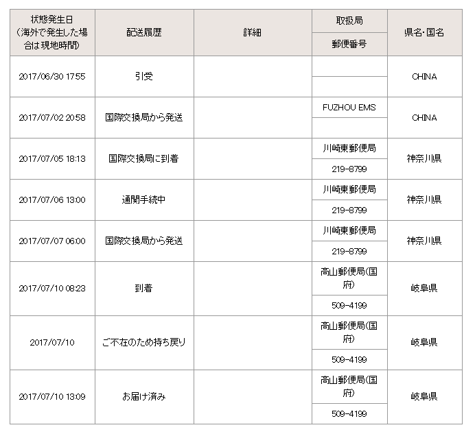 中国~日本が3日間で届くのに なぜ神奈川~高山が3日間掛かるんだ?