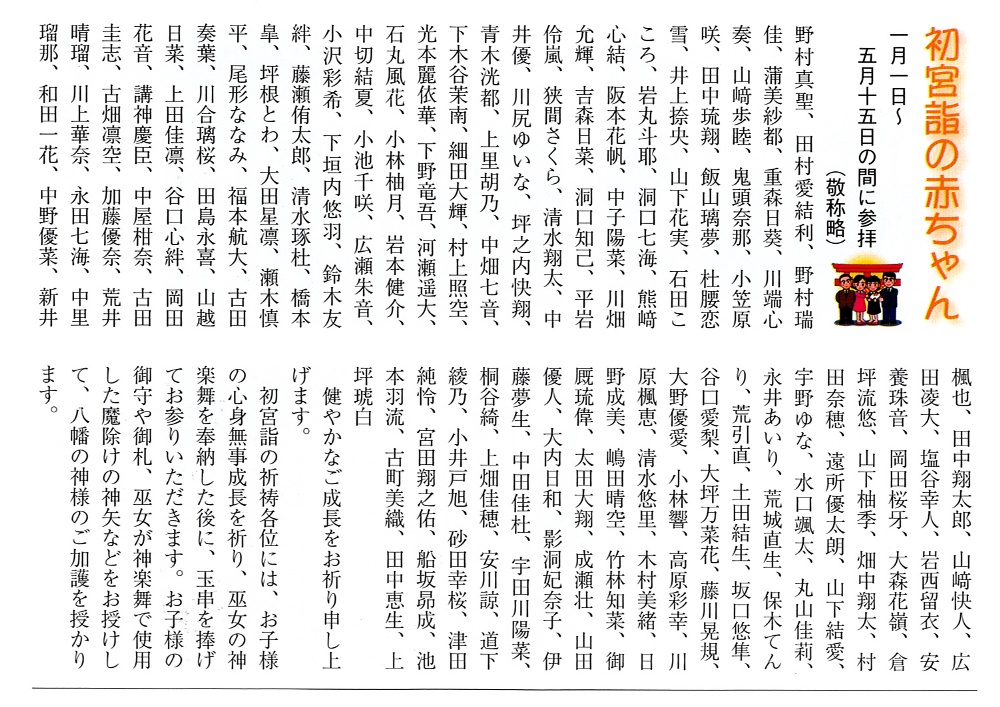 とりあえず、神社さんから送られてきたDM。初宮詣の赤ちゃんが載ってました。