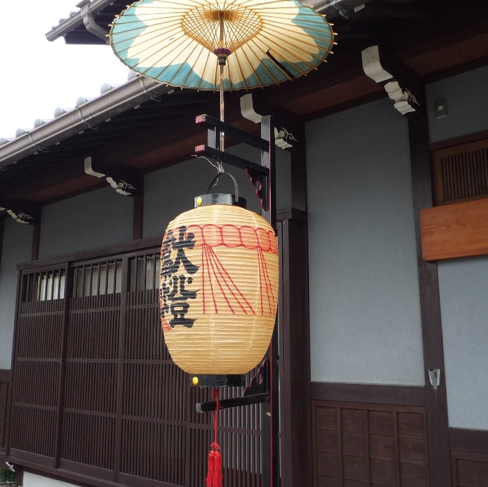 祭りでは各家で提灯や暖簾を掲げますが、深い軒、千本格子をあしらった窓、