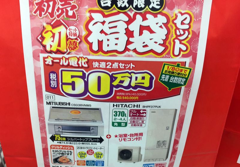 某量販店にてエコキュートとIHクッキングで50万円(税別)セット。
