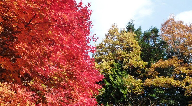 少しだけ覗いた青空と紅葉。