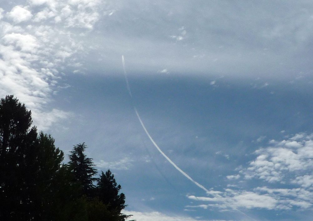 ぐーん!って登っていく飛行機雲に影が出来てました。