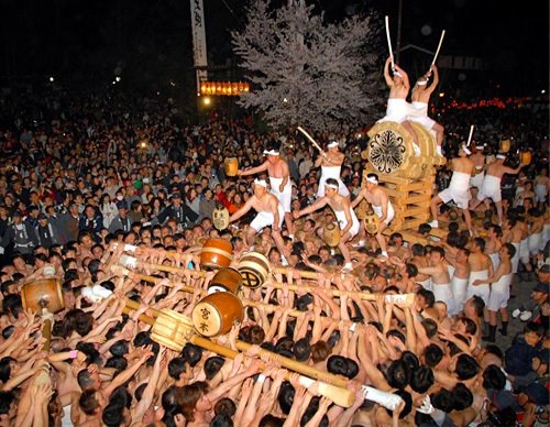 裸の男がほとばしる汗と酒にまみれ、組んず解れつで深夜の街に溢れるこの祭
