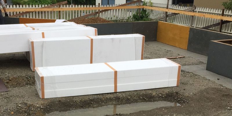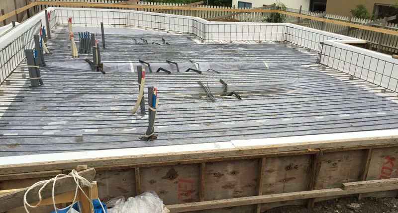 こーやってコンクリート打設前の基礎の立ち上げ外側と