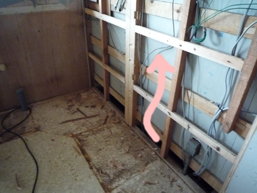 ↓キッチン入れ替え工事。内壁を剥がした所です。
