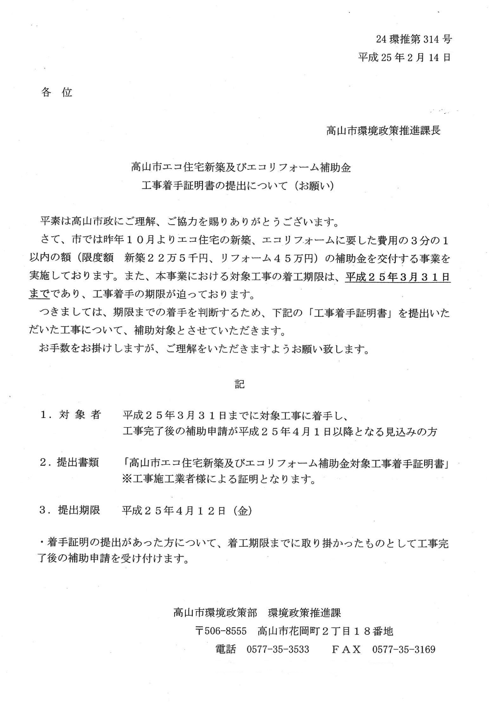 ただし別途「着工証明」の提出がある場合は 着工期限までに