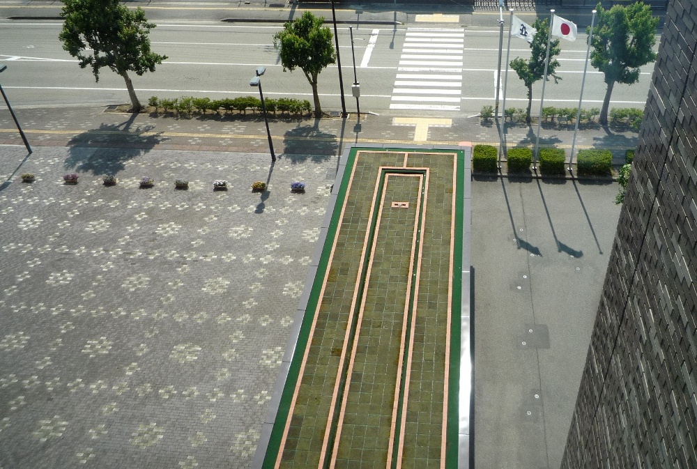 久しぶりに高山市役所の上階に登ったら・・ ぇ エントランスルーフに緑化??