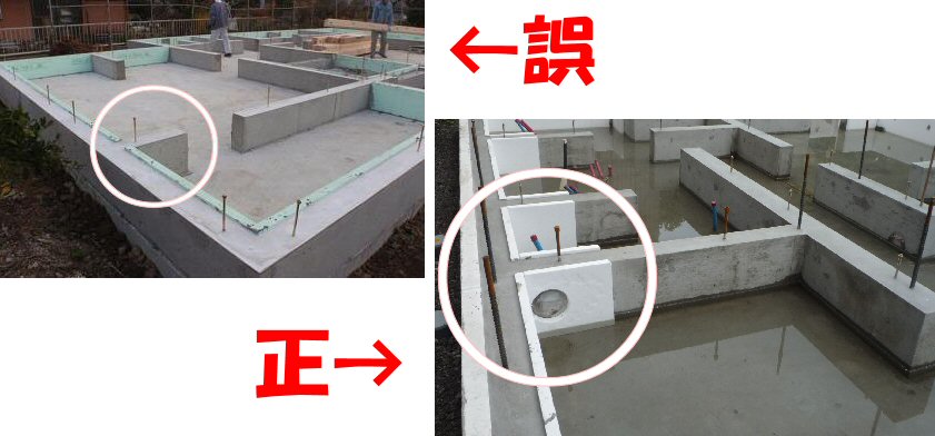 ↑断熱ラインを途中で切らないで基礎を囲む事が必要です。