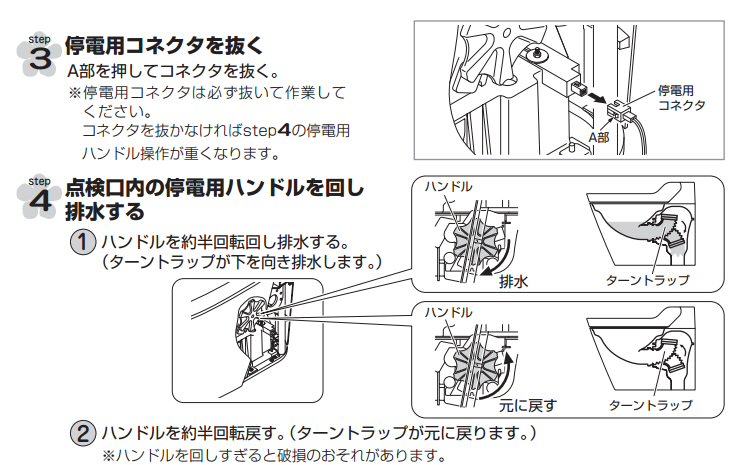 このトラップが壊れると 排水は一回一回自分でやらなきゃイケマセン。