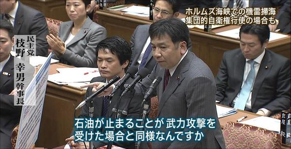 数年前国が亡くならなかったのが奇跡の様だ http://t.co/kEkbCJI9Ey 民主・枝野氏「海峡封鎖されて石油が止まる事が、武力攻撃を受けた場合と同等なんですか?」