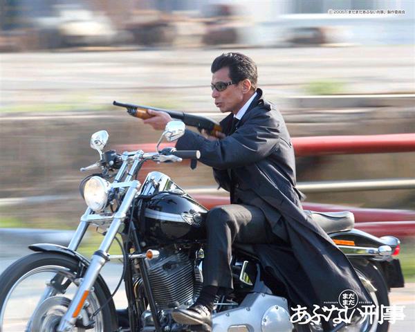 ノーヘルだわ ショットガン持ってるわ アクセル触ってないのに走ってるわ コート風切ってるわで 確かにあぶないわ。