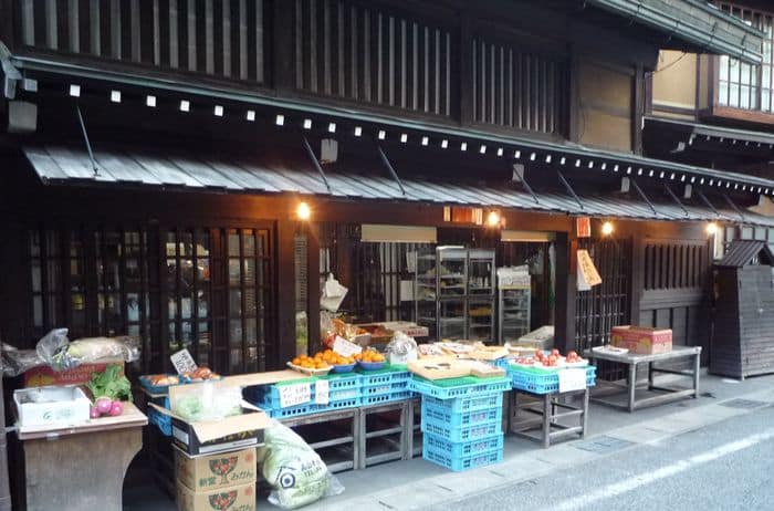 低くて深い軒、城下町だった飛騨高山の商家風景。