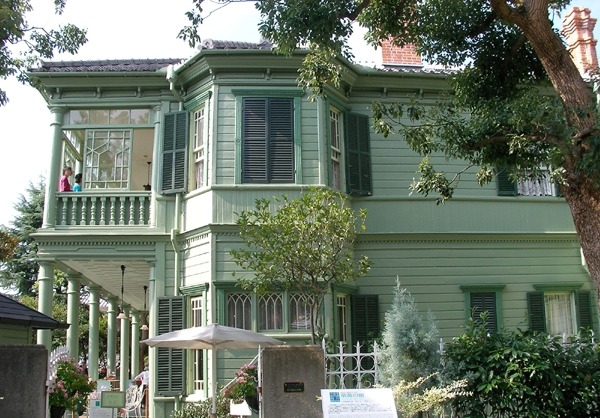 平成7年の阪神淡路大震災まで北野町1丁目(この地より北東300m)に建っていたもので、家屋台帳によると建築当初の所有者は米国人M,J,シェー氏です。その後、所有権が何度か移っていますが、最後の所有者こそが、昭和52年放送のNHK・朝の連続TV小説「風見鶏」の主人公であるドイツ人パン職人、ハインリヒ・ブルクマイヤーのモデルとなった人物の二世です。