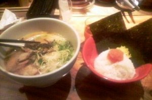 博多とんこつ&めんたいご飯も美味しいのに箸がプラてアアンタ。