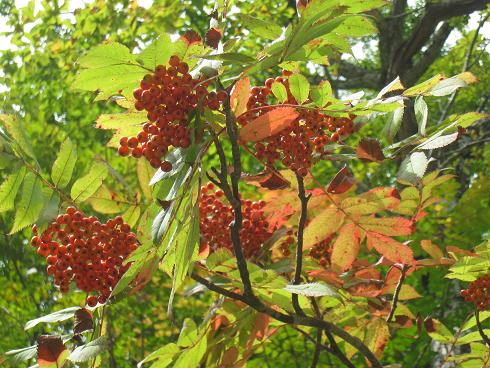 ここらでもナナカマド紅葉してきましたね。ナナカマドって名前の由来は諸説あるけど「七回カマドに入れても燃えない」って説がある位、火に強いのは確かで炭作ると良いのが出来るんだよねぃ。勿体無くて使えないけど(爆