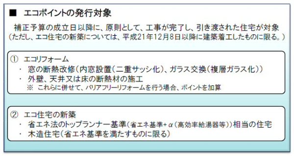 『住宅版エコポイント制度の創設』が盛り込まれました。