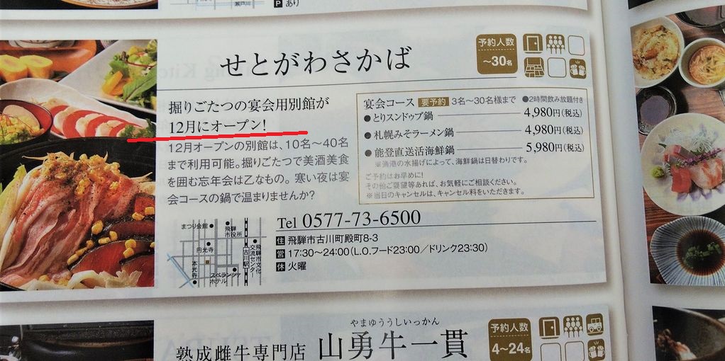 せとがわ酒場「別館」12月にオープンです。<クリック可>