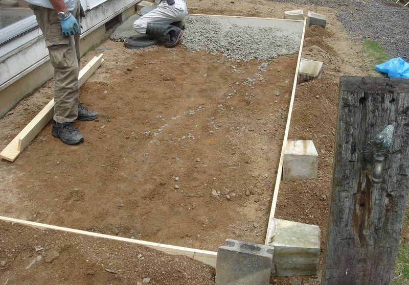 まずは土だったデッキ下に防湿コンクリートを。