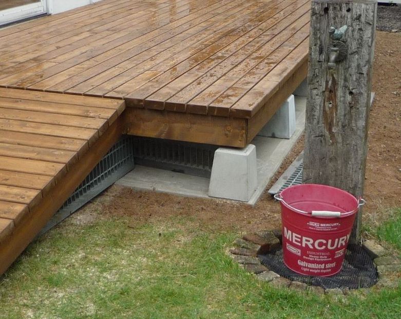 外部デッキは木材を組まず 水が切れる様に構成するのが正解です。