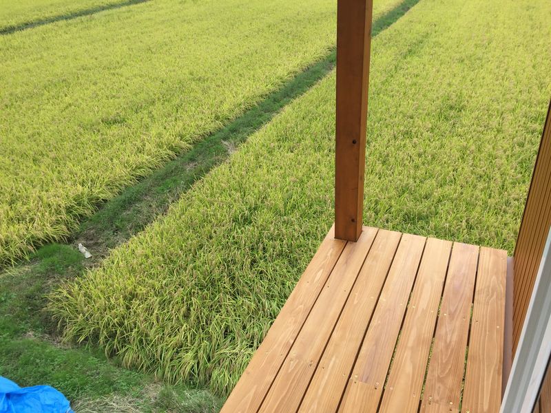 ウッドバルコニーの上には 大きく張り出した屋根がありますので