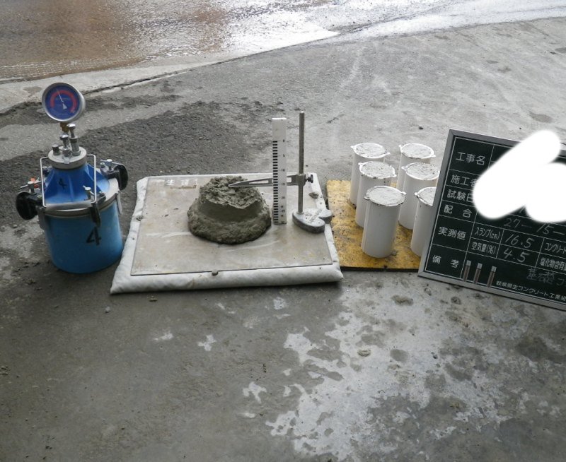 スランプ試験(1回)・空気量試験(1回)・共試体作成(6本)・強度試験(6本)の他