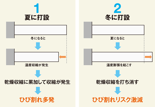 その収縮率は気温に左右され コンクリートは冬季に打つことで