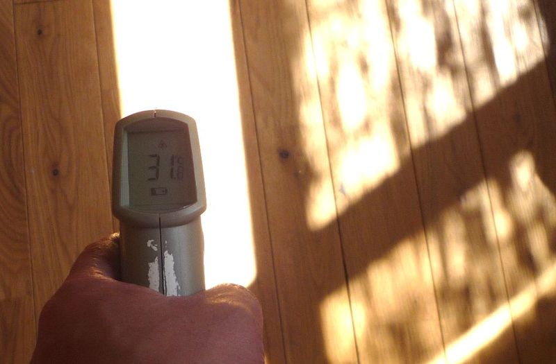 そこを通り抜けて 直射日光が当たった床温度。