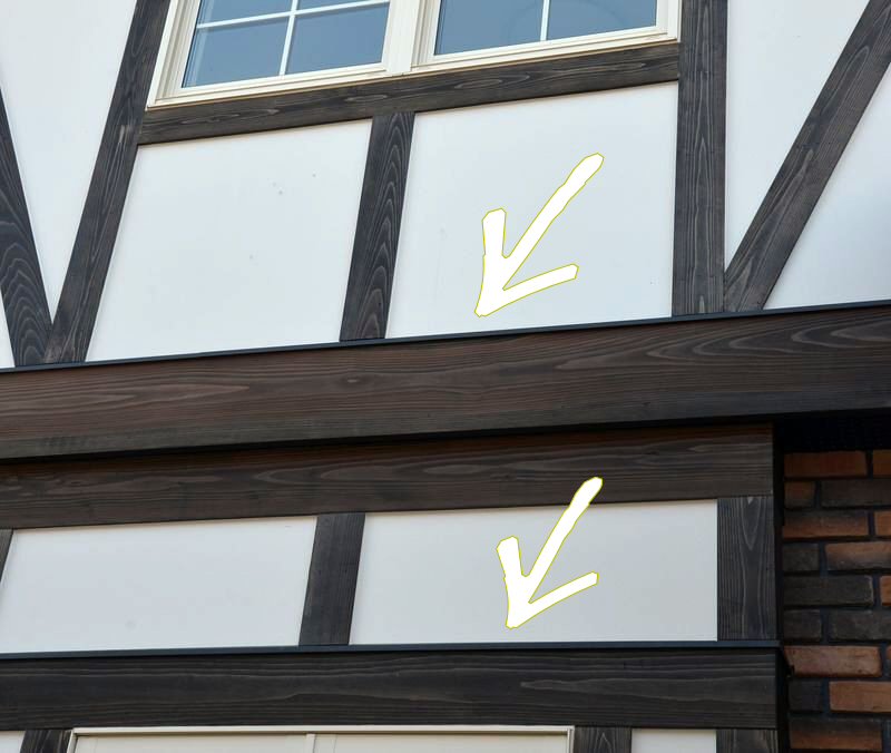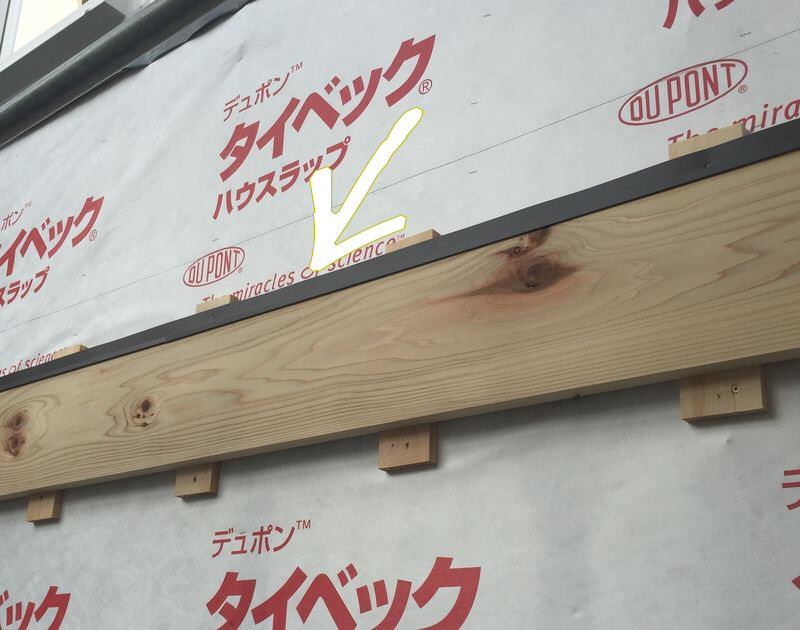 矢印部分 水平方向等には先置きで水切りを設置。