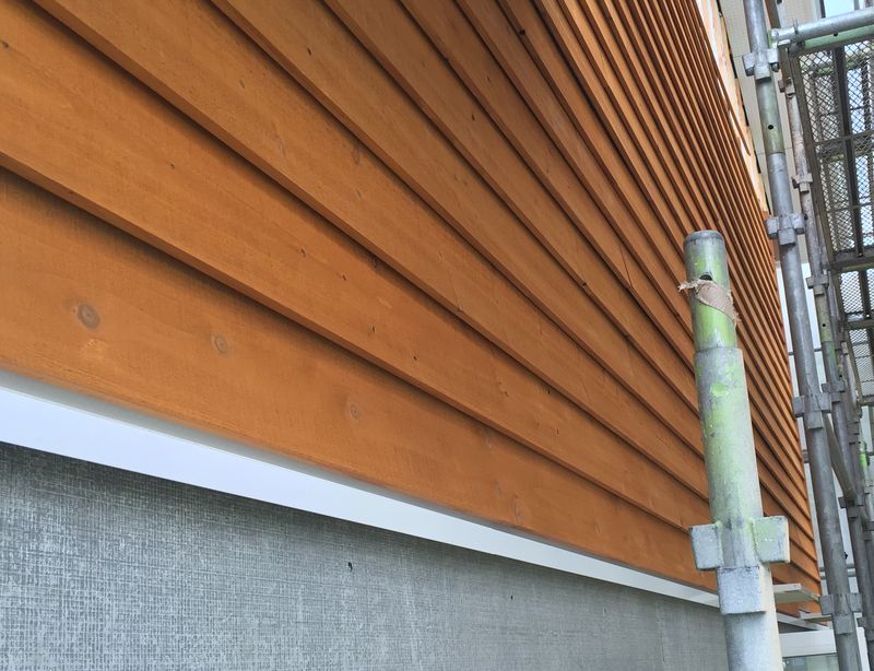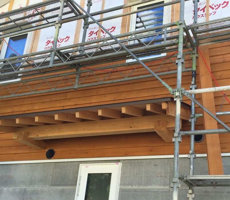 ちなみに水切り(白い線)の下は漆喰仕上げの下地。