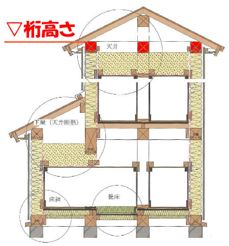 「桁上断熱」を行う事もあります(クリック)