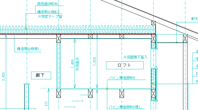 桁と構造用合板部分の気密・束廻りの気密が求められます。