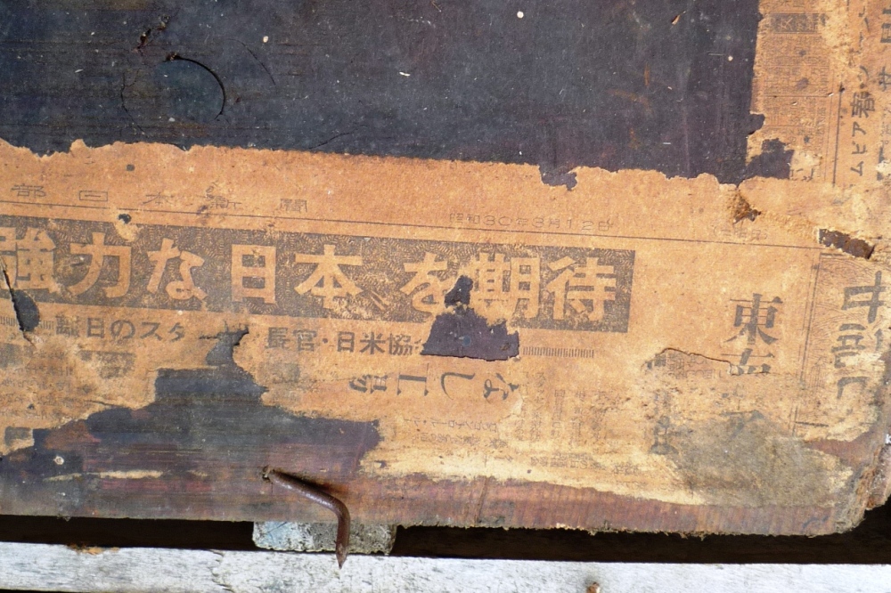良くみると板の廻りに新聞紙らしきものがくっついてます。