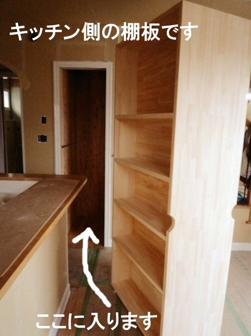 ダイニングキッチンに設けた奥行きのある隙間に移動式棚を。