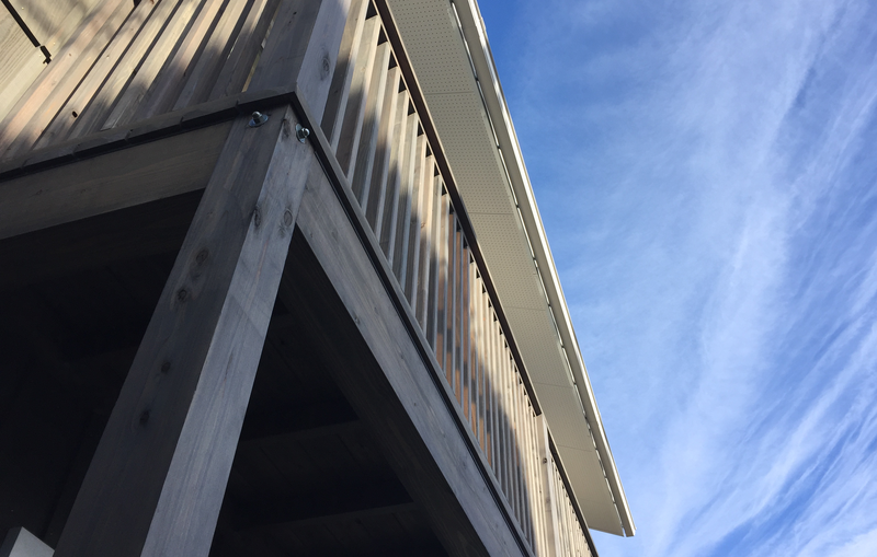 木製のバルコニーに屋根無いのは珍しいですね とご質問。
