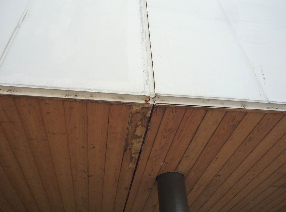 軒天井に無垢の木を使うのは良いんだけど 収まり悪すぎでこの状態。