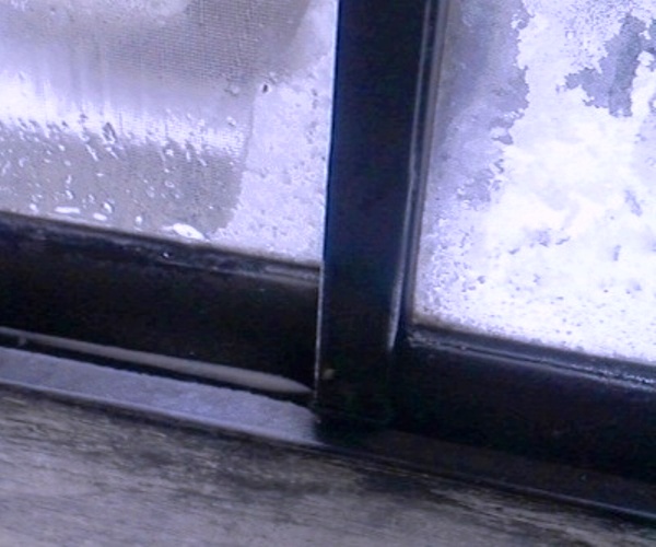 下枠をご覧ください。アルミ枠部分の結露水がシッカリ凍ってますね。