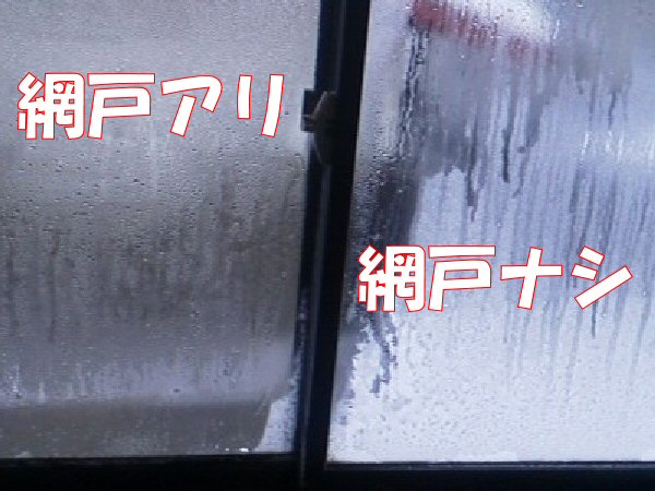網戸がある方が溶けている・・と言うか凍って居ないのが解ります。