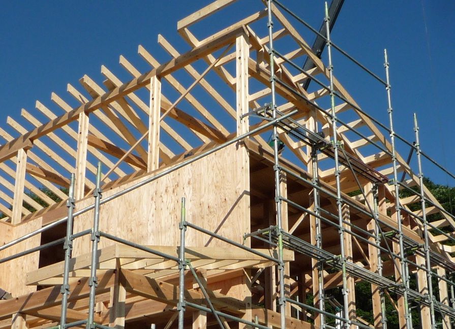 屋根と絡む部分の壁面を仕上げてから 初めて屋根を掛けます。