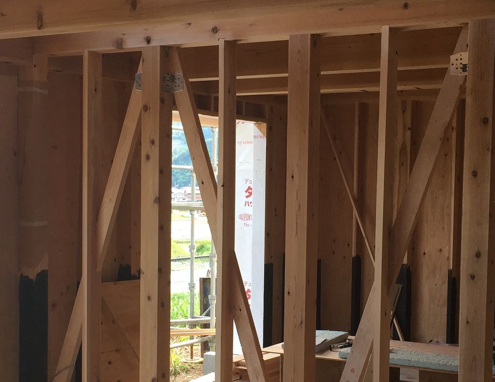 なので 内壁の耐力は気流止めのみ留意したら「筋交い」で取る事も多く。