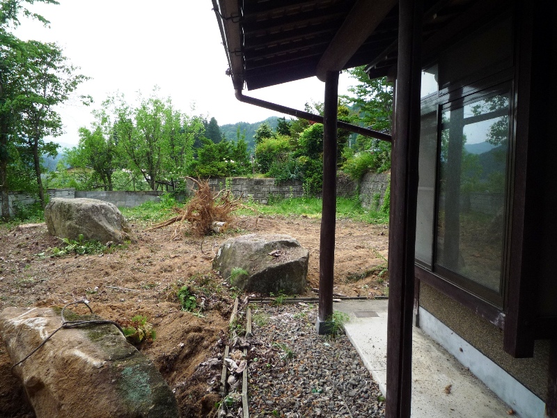 さて問題は奥のバカでかい岩だなぁ・・3トンは軽くあるなぁ・・。