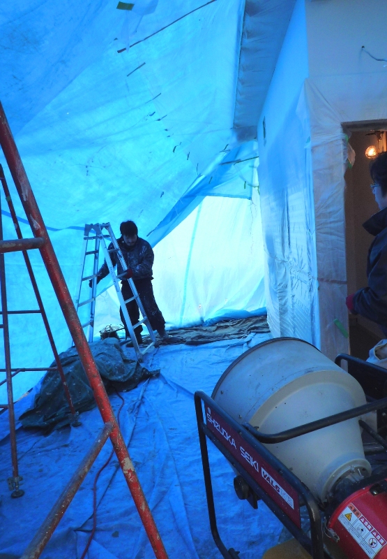 ガッツリ養生+ジェットバーナー×2台で 気合の常春状態に。